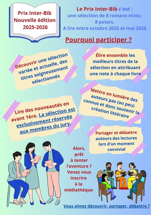 Lundi 6 octobre, votre médiathèque, en partenariat avec les Médiathèques d’Ecole Valentin et de Pirey lance le « Prix Inter-Bib ».