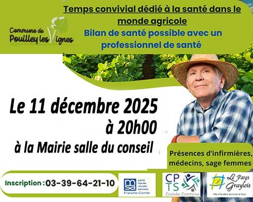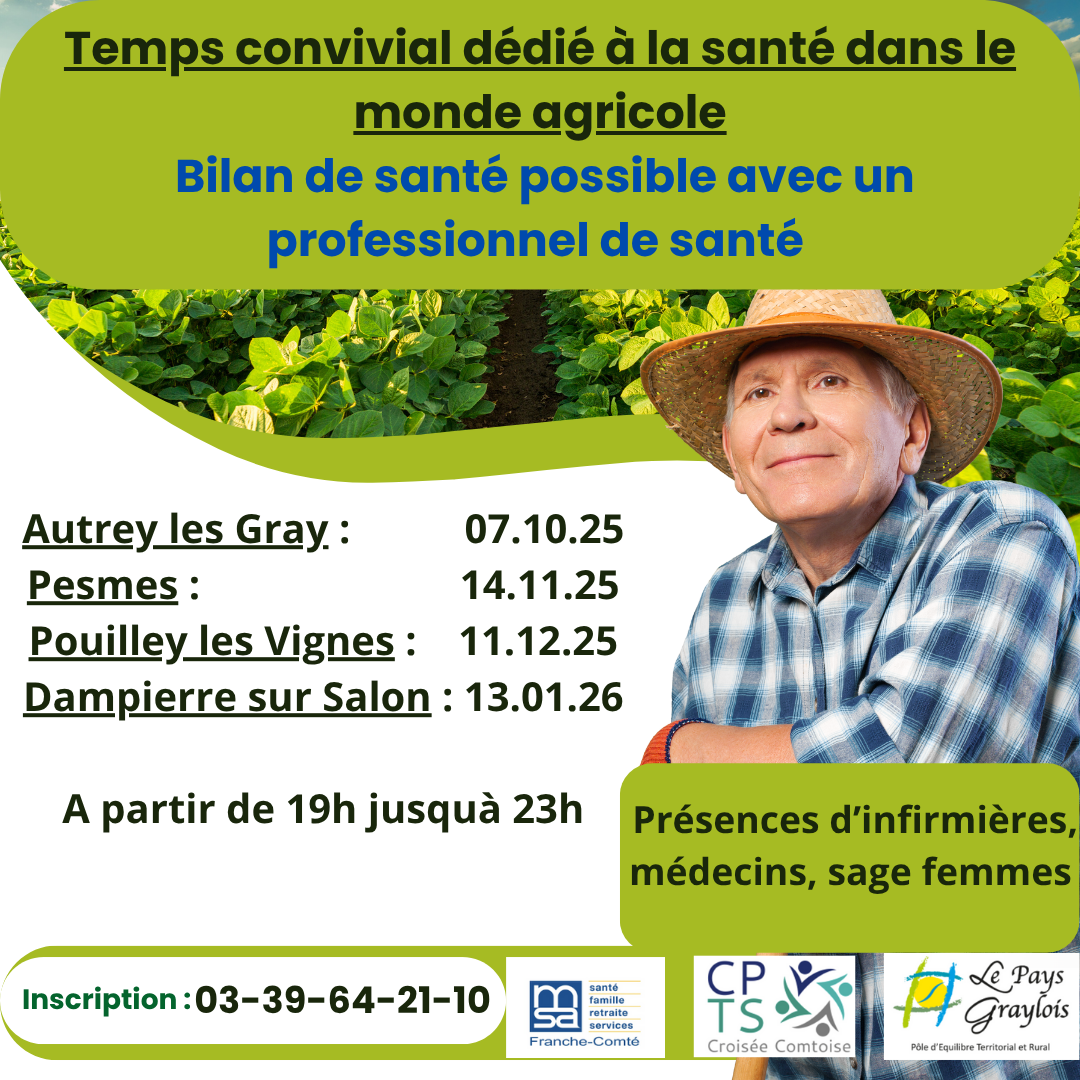 Les professionnels de santé du territoire de la CPTS Croisée Comtoise organisent 1 soirée auprès du monde agricole autour de la thématique de la santé