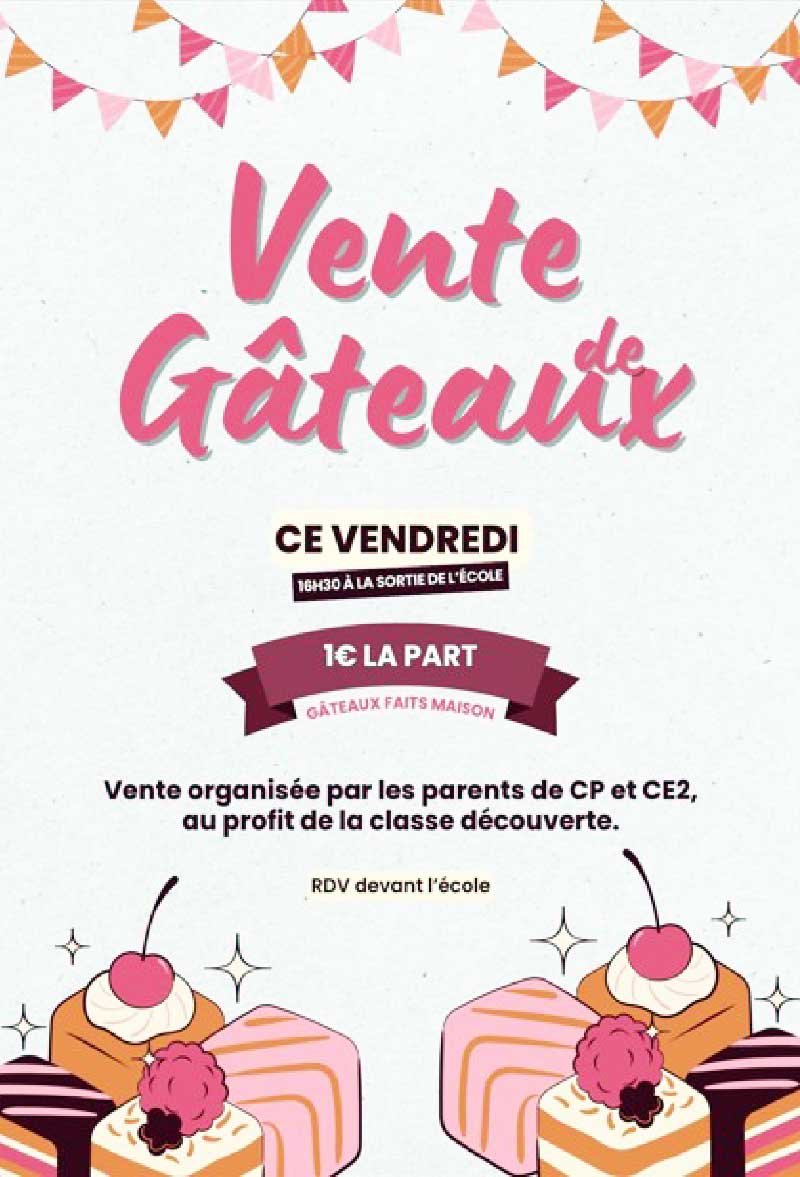 Une vente de gâteaux est proposée à la sortie d'école ce vendredi à 16h30