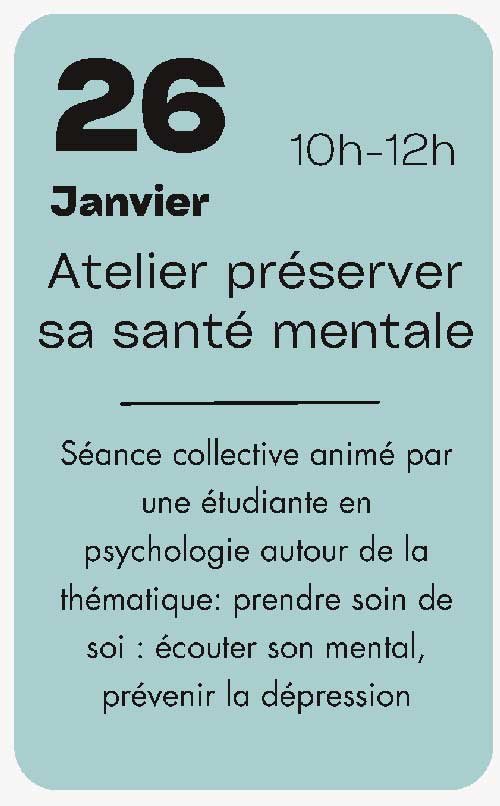 Ce programme de prévention santé à destination des personnes âgées de plus de 60 ans aura lieu à la mairie à compter du lundi 29 décembre.