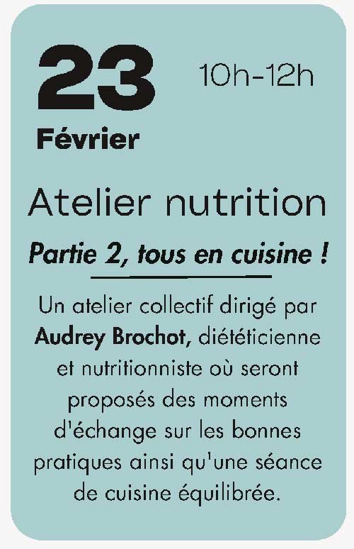 • Fréquence : 1 séance / semaine / les lundis matin de 10h00 à 12h00